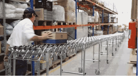 待打包發(fā)貨的倉庫物流裝卸福來輪伸縮輸送線